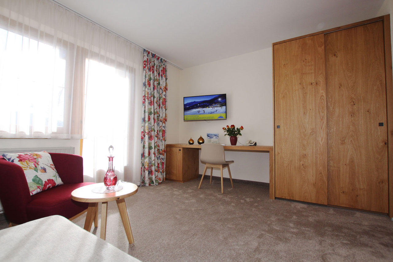 Das Apartment Gartenidylle ist nach „Tiroler Landart“ möbliert und ebenerdig zugänglich. Es ist südostseitig ausgerichtet und verfügt über eine eigene Terrasse mit Garten.